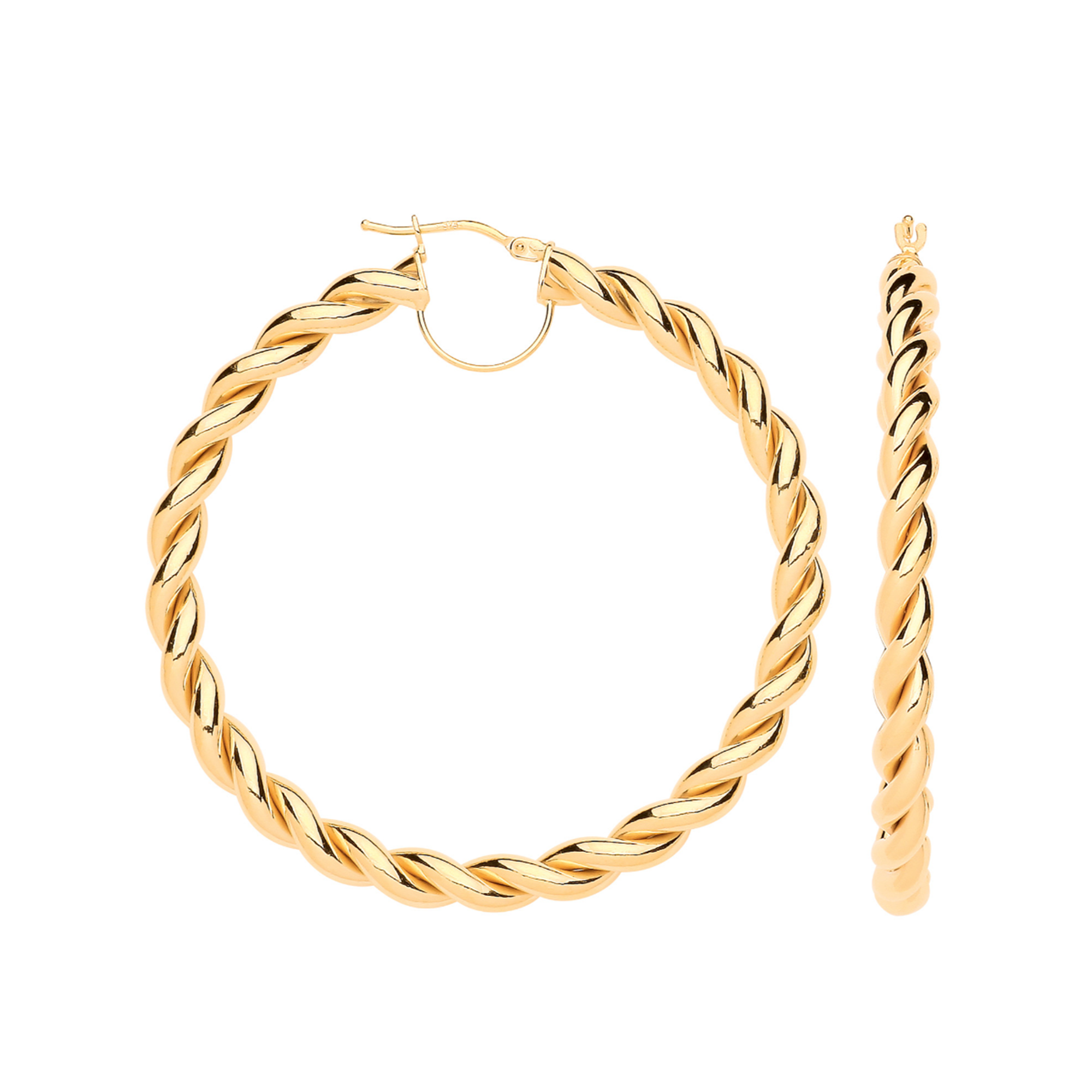 These earrings feature a captivating twist design, crafted from premium 9ct gold. The hollow construction allows for a bold 30mm size without the weight, ensuring comfort throughout the day. The intricate twist pattern catches the light beautifully, creating a dazzling effect that enhances their elegant appeal.