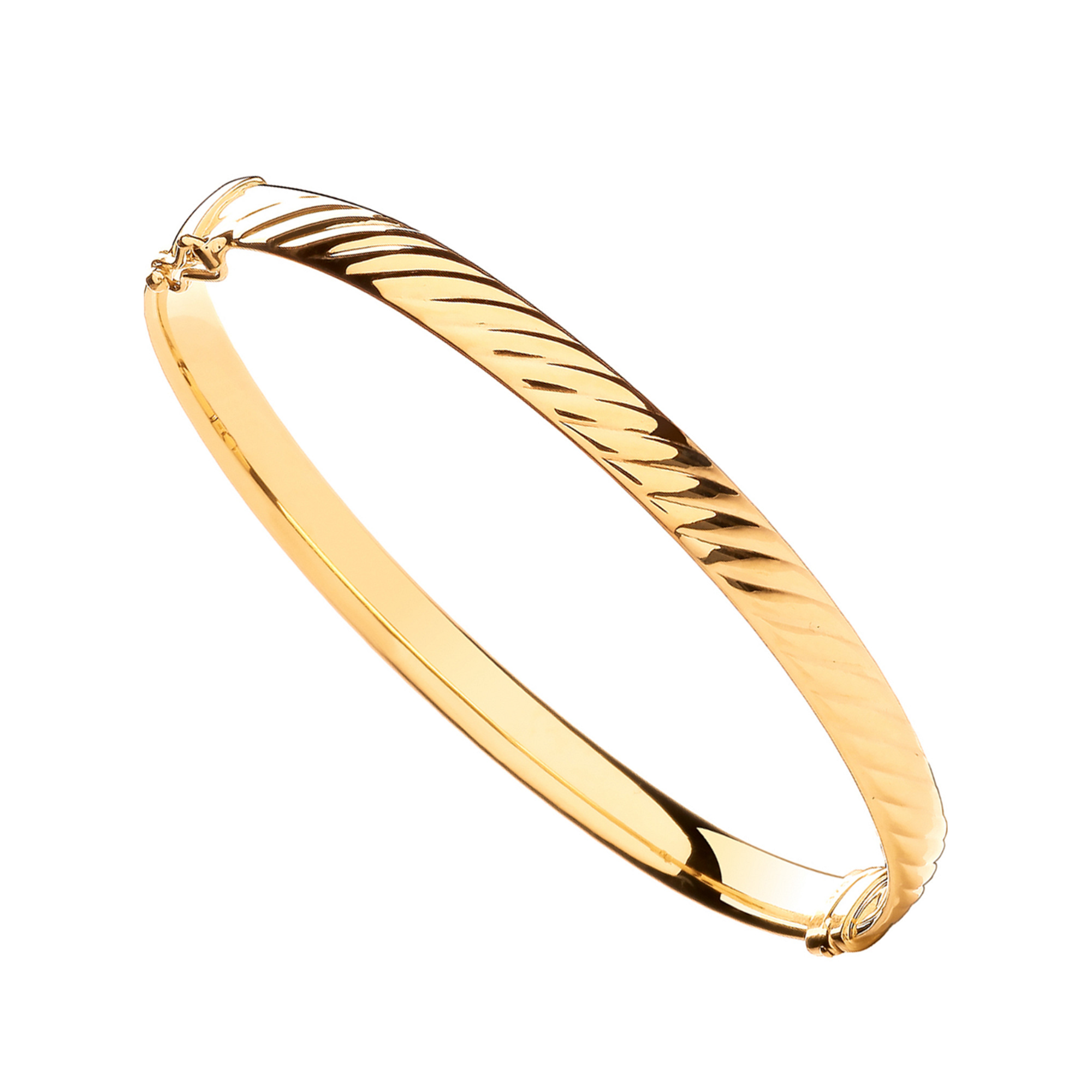 Elevate your style with the 9ct Gold Ribbed Design Hollow Oval Bangle. Order now to add this elegant and textured piece to your jewelry collection.