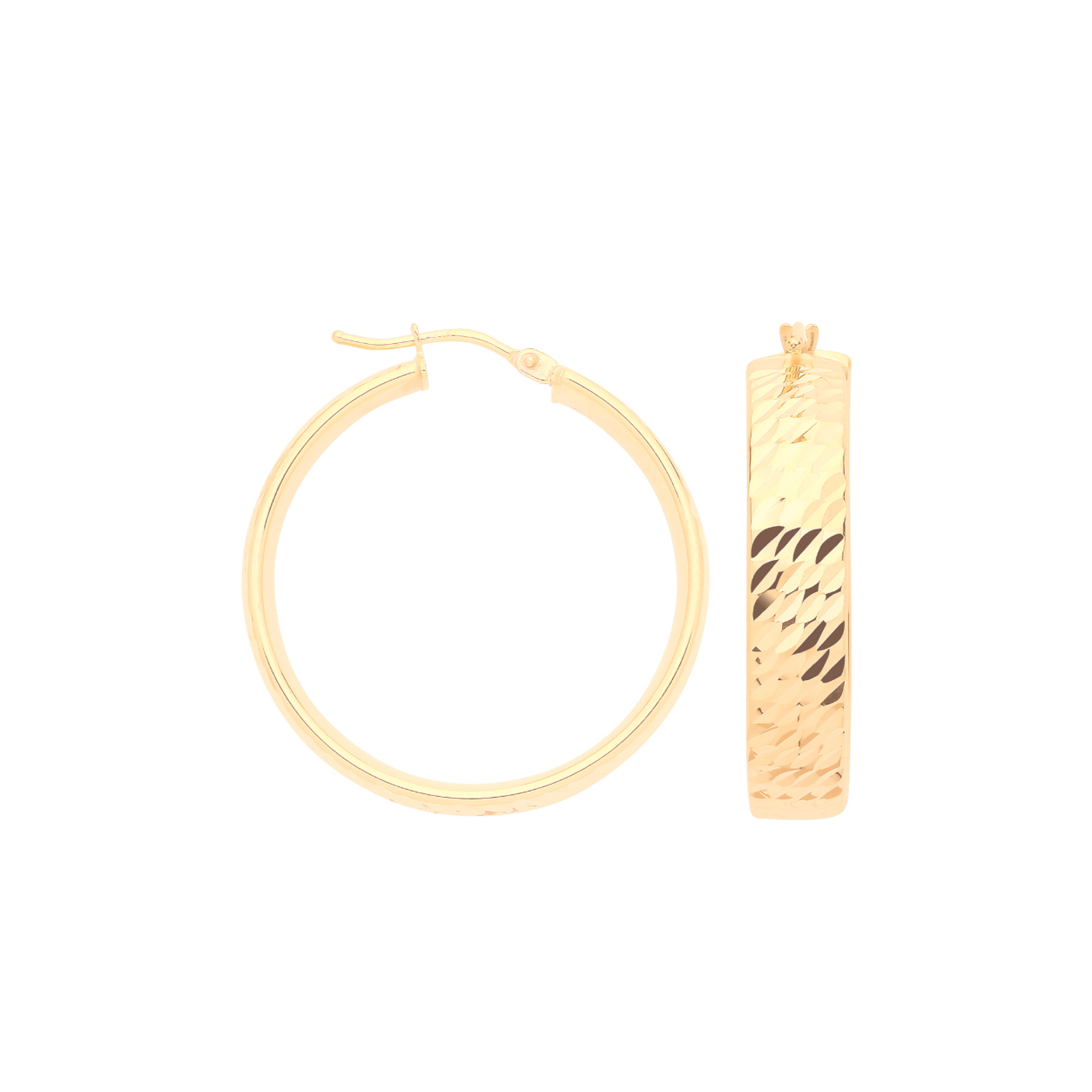 9ct solid Gold 25mm Diamond Cut Wide Hoops