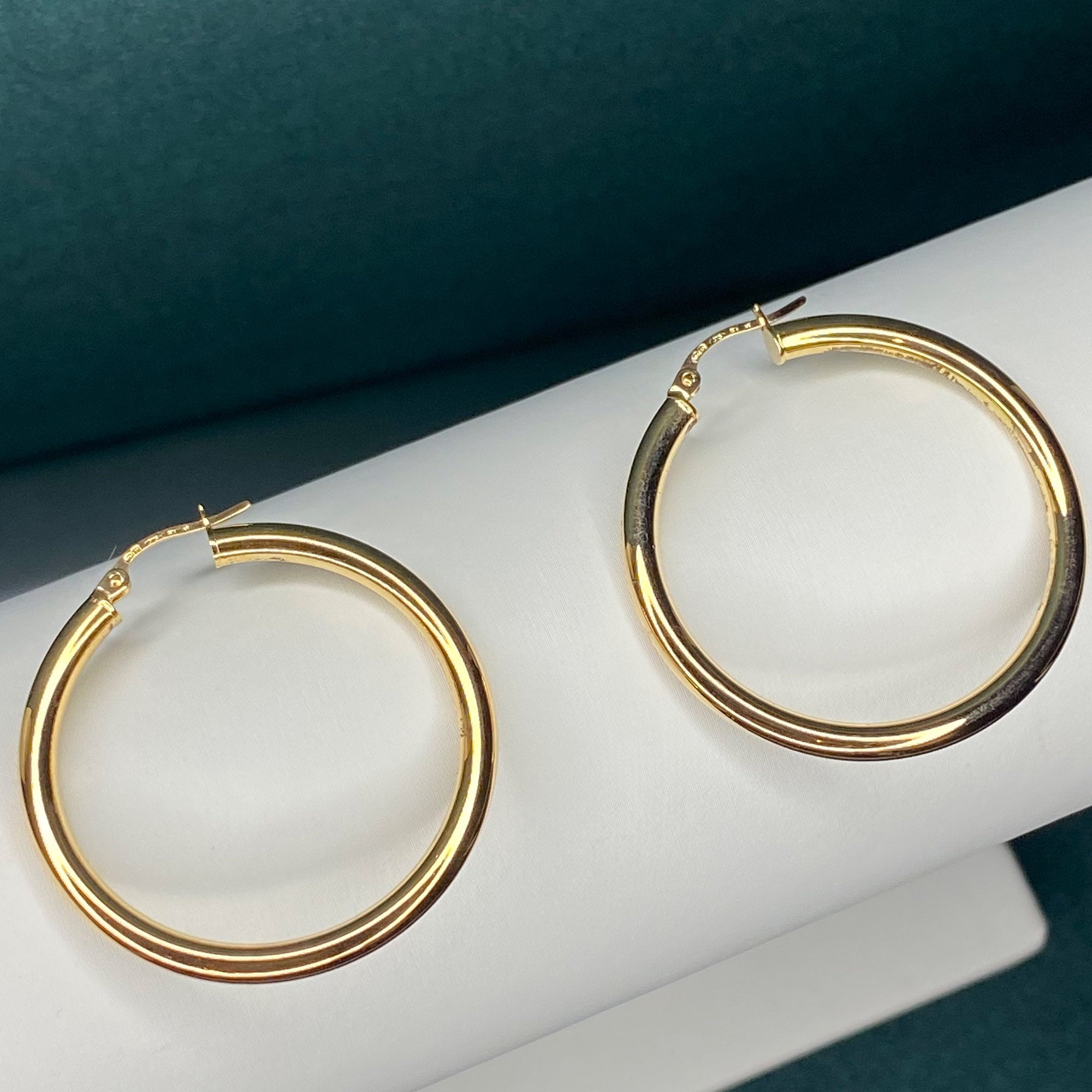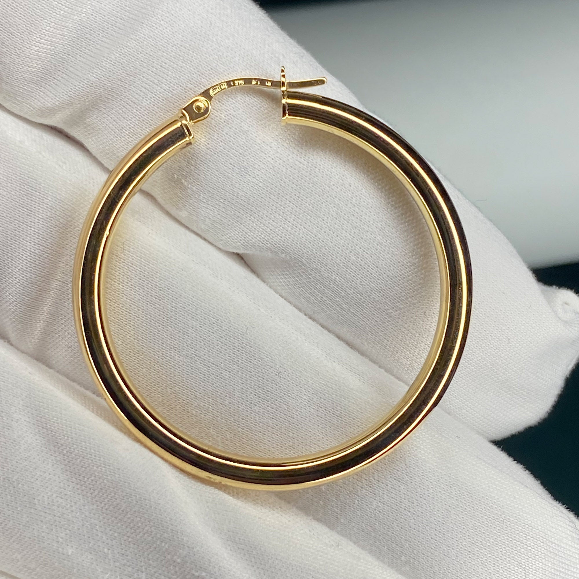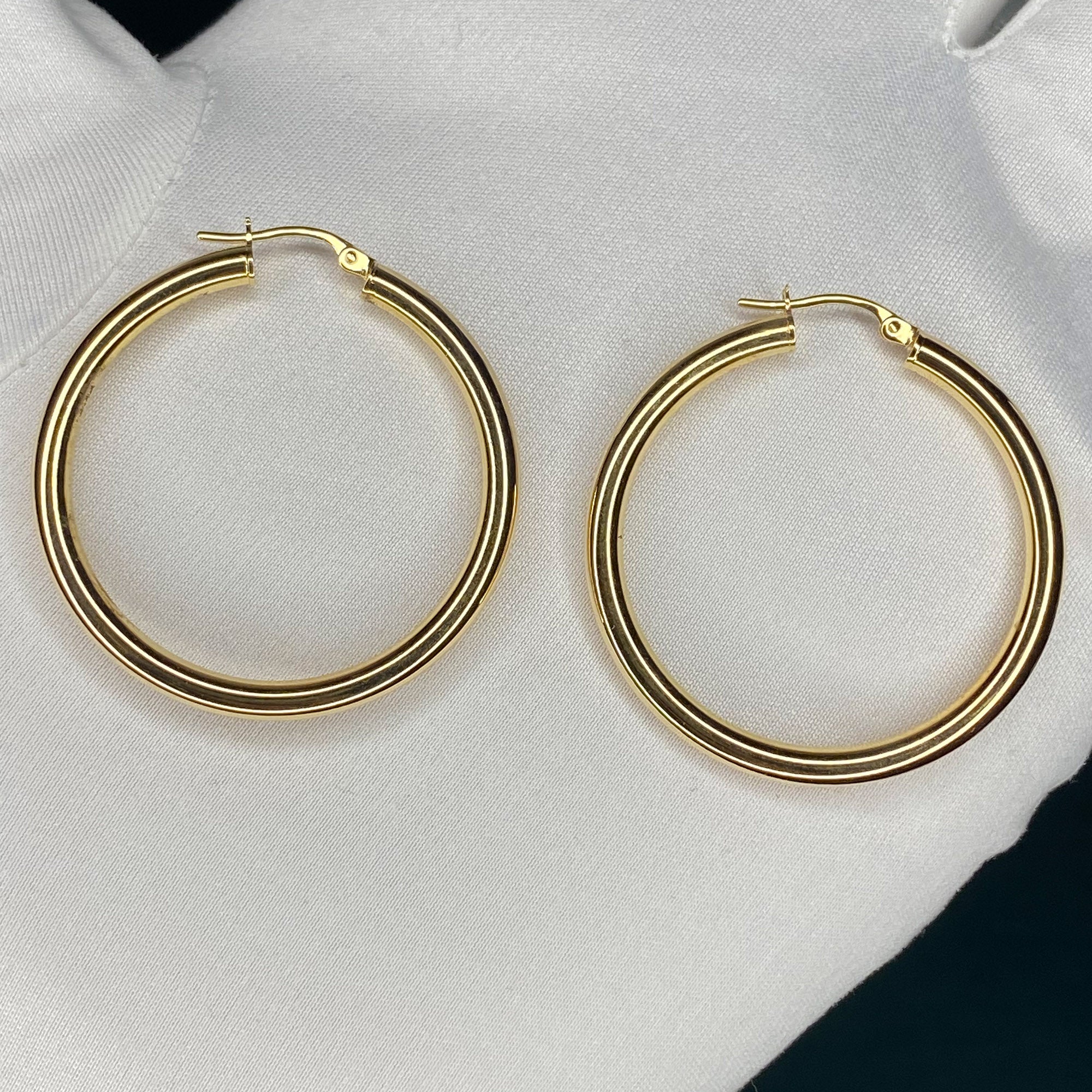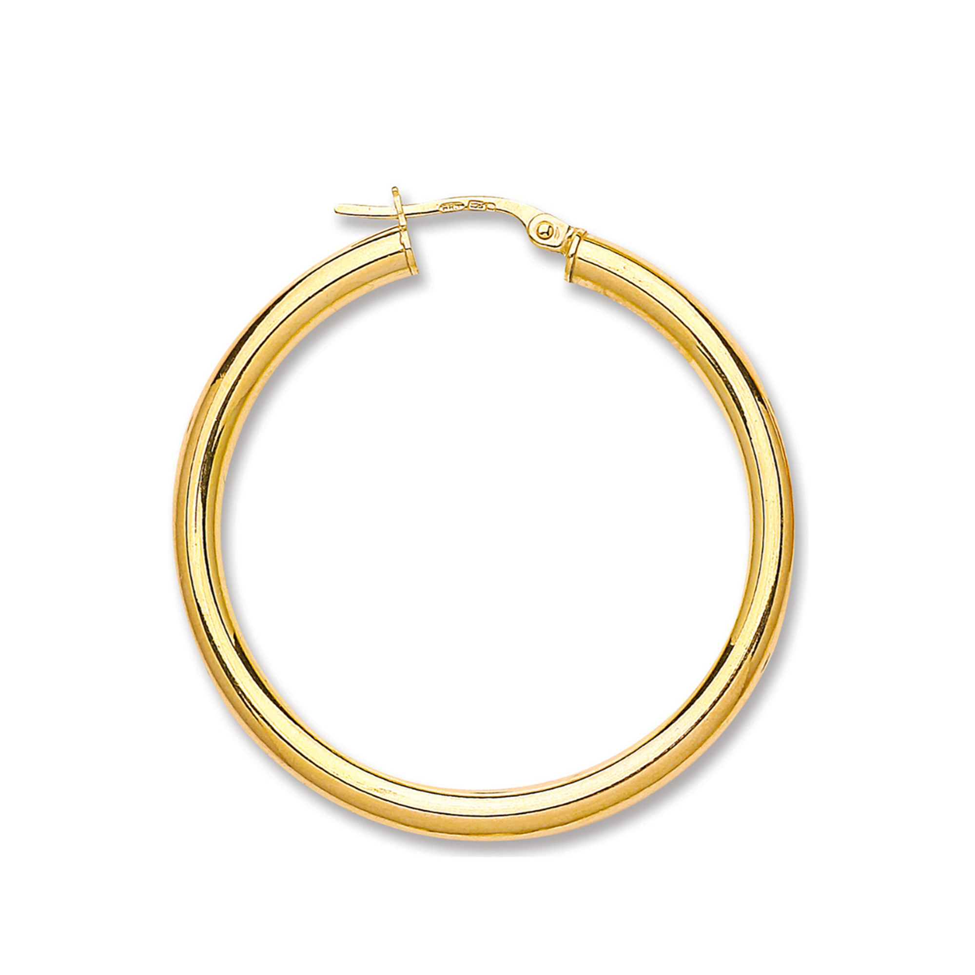 9ct Gold 36mm Round Tube Hoop Earrings