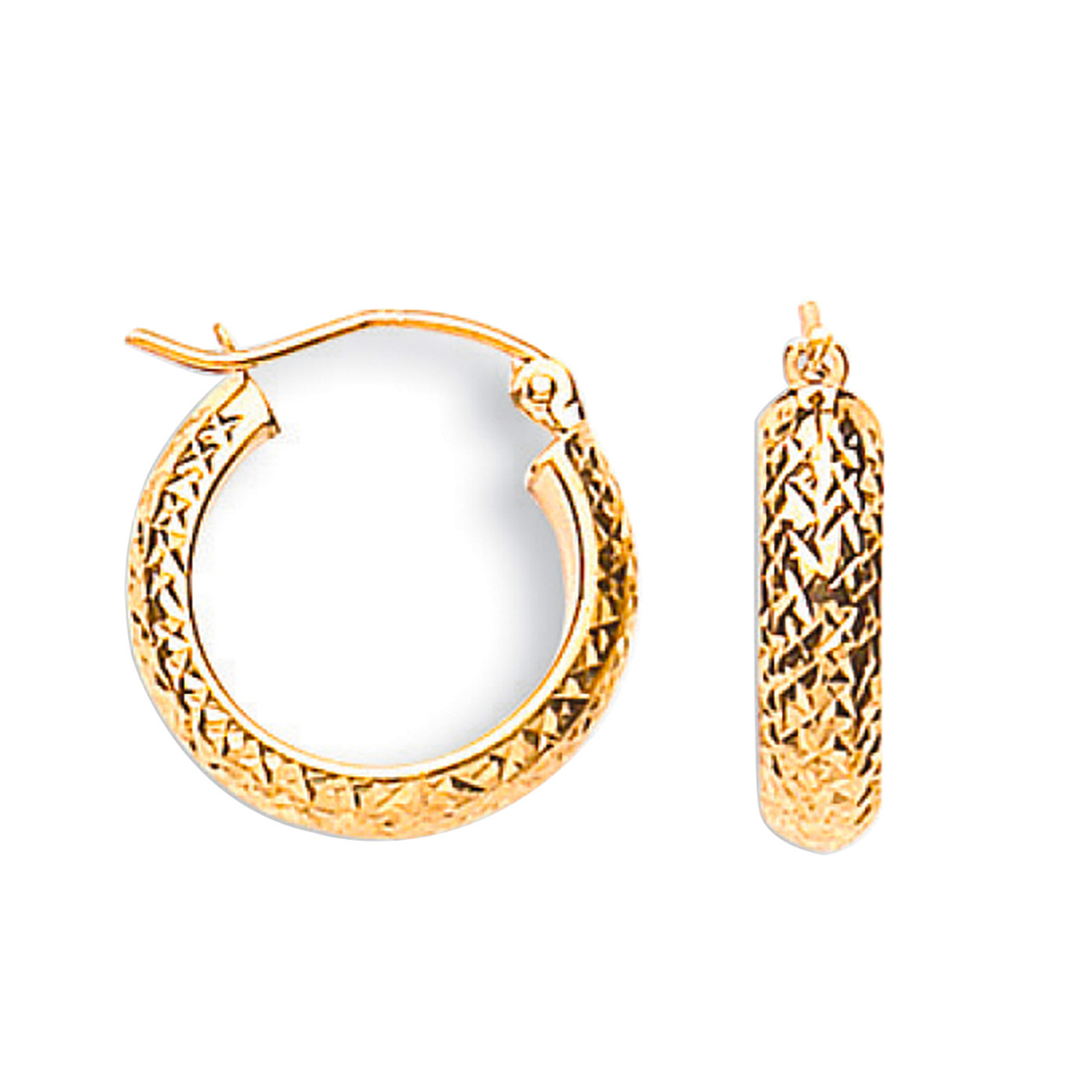Meticulously crafted with attention to detail, these earrings are made to the highest standards of quality. The solid gold construction ensures they are durable and long-lasting, while the diamond-cut detailing is expertly executed to create a brilliant, eye-catching effect. Polished to a high shine, these hoops are designed to retain their lustrous finish for years to come.