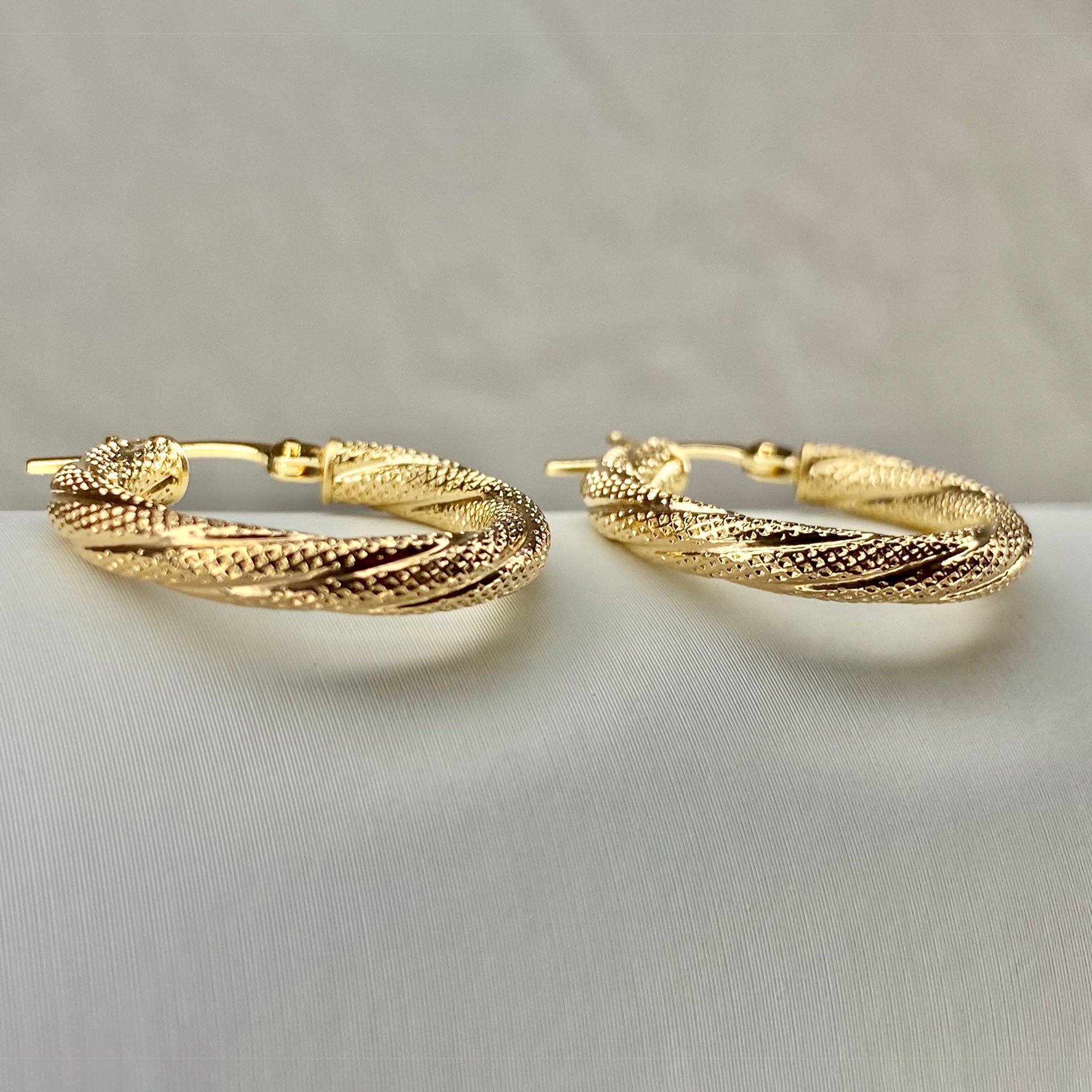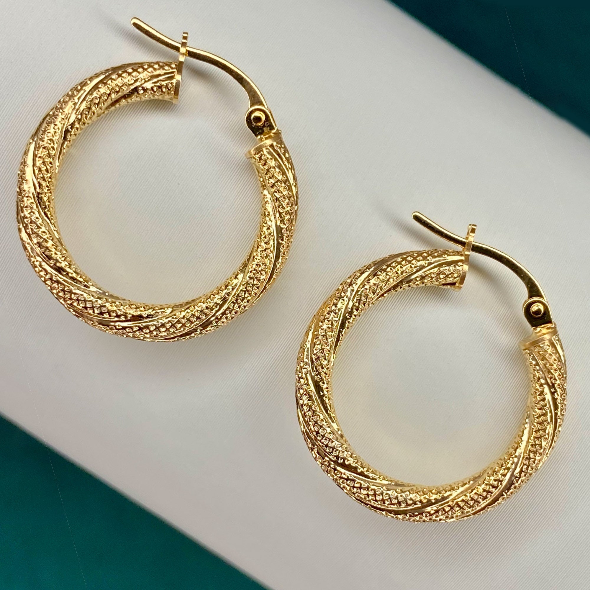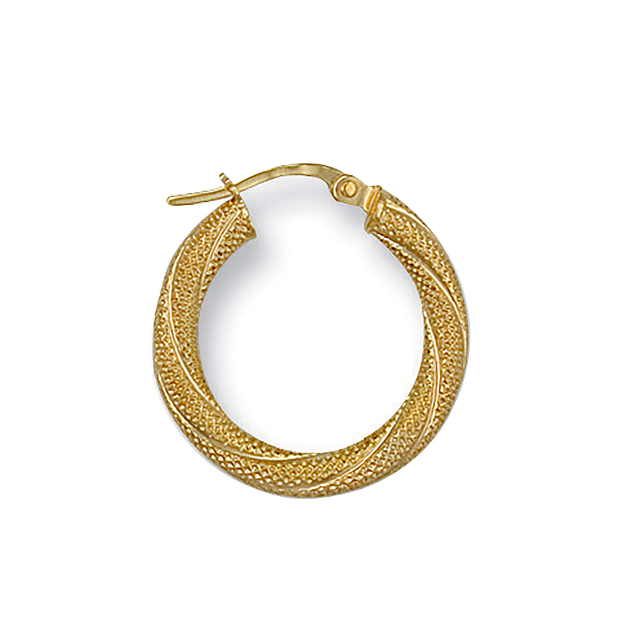 9ct solid Gold Frosted Twisted Hoop Earrings 21mm