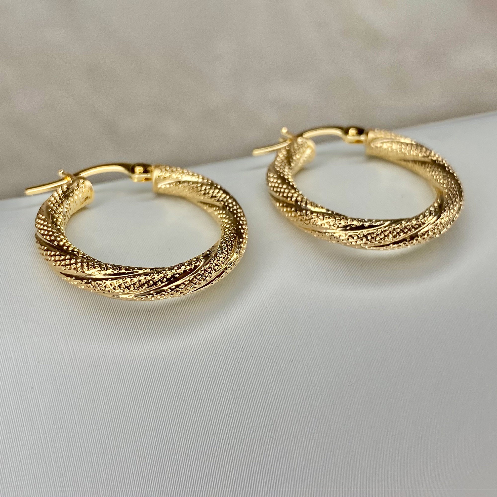 Versatile Elegance: These 9ct Solid Gold Frosted Twisted Hoop Earrings are incredibly versatile, effortlessly enhancing your style whether you're dressing up for a special event or adding a touch of sophistication to your everyday look. Their contemporary design and subtle texture make them a perfect choice for modern fashion enthusiasts, allowing you to make a statement wherever you go.