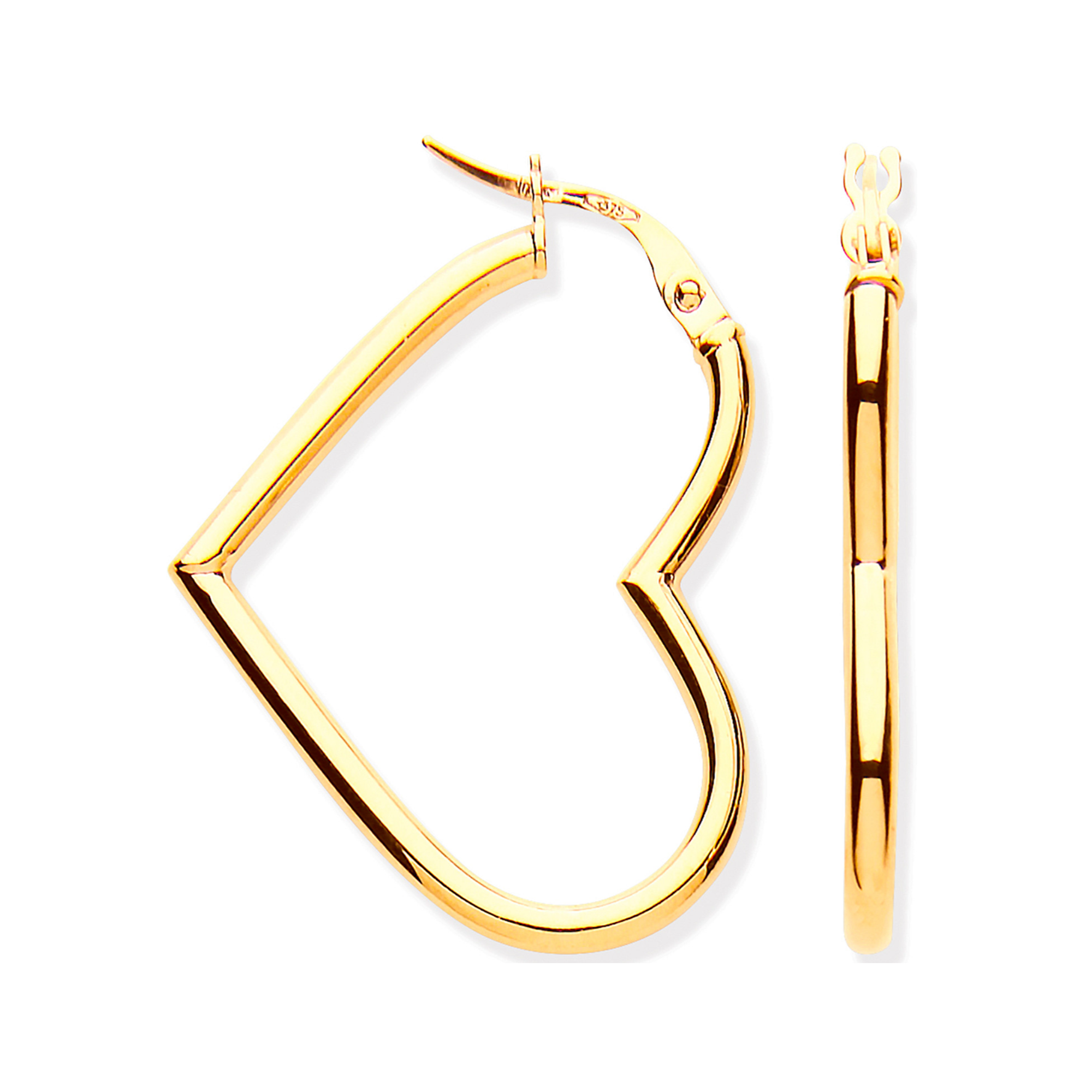 9ct Solid Gold Heart Shaped Earrings 23mm