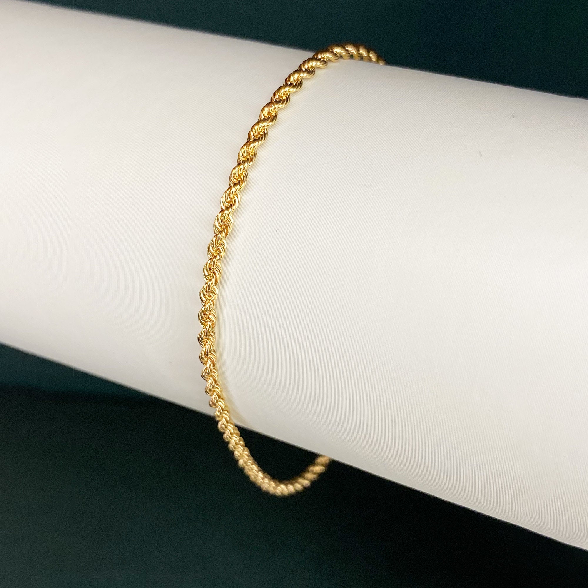 Material and Design: Made from high-quality 9ct solid gold, this hollow rope chain bracelet boasts a brilliant shine and a lightweight construction. The rope chain design is intricately woven, creating a textured and eye-catching pattern. Despite its delicate appearance, this bracelet is sturdy and durable, making it suitable for everyday wear. The hollow construction ensures that the bracelet is comfortable to wear while maintaining its elegant look.
