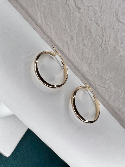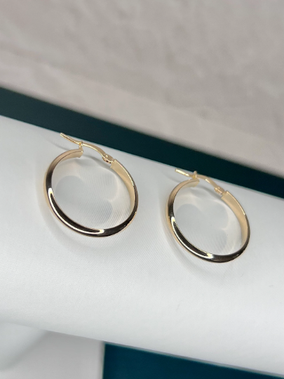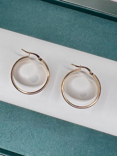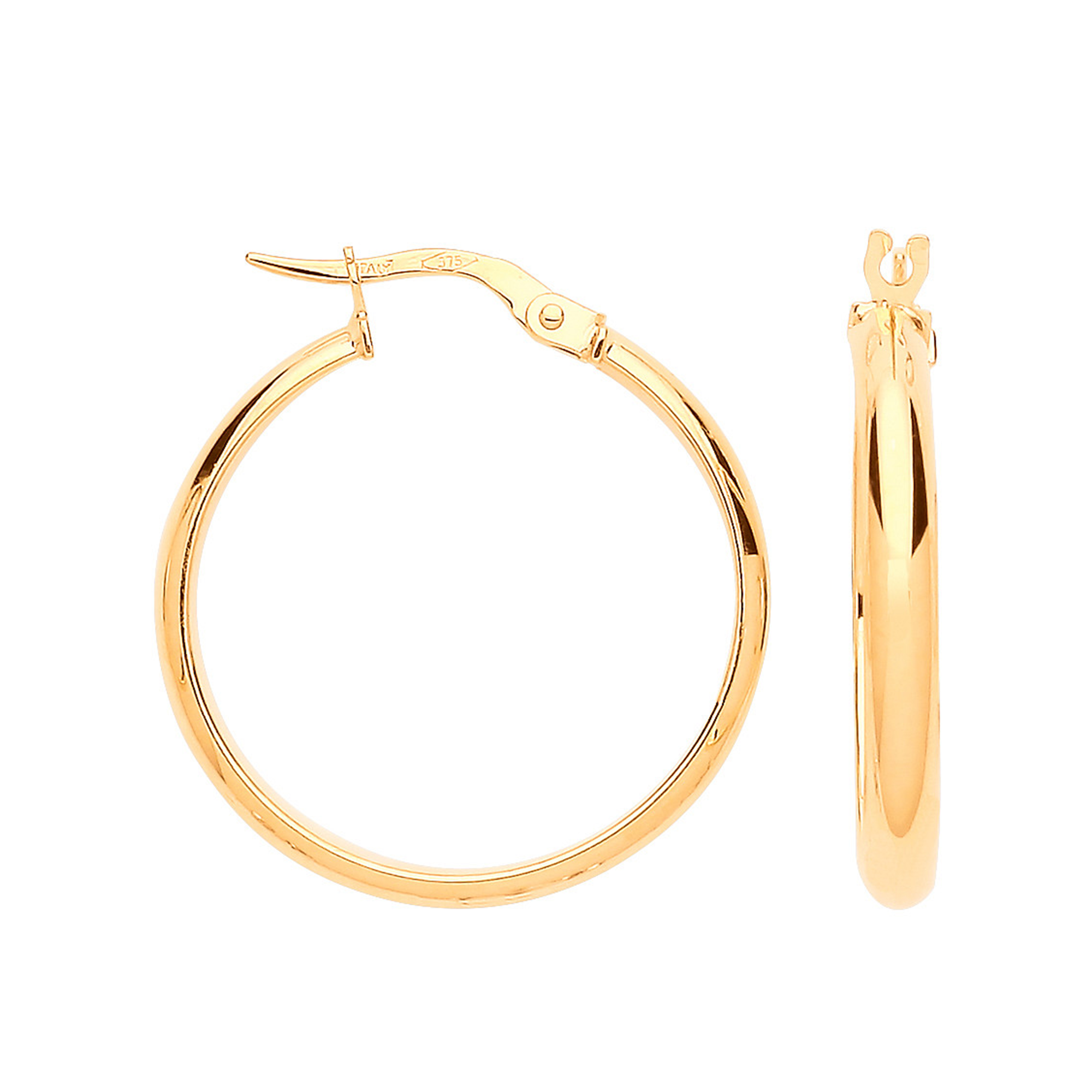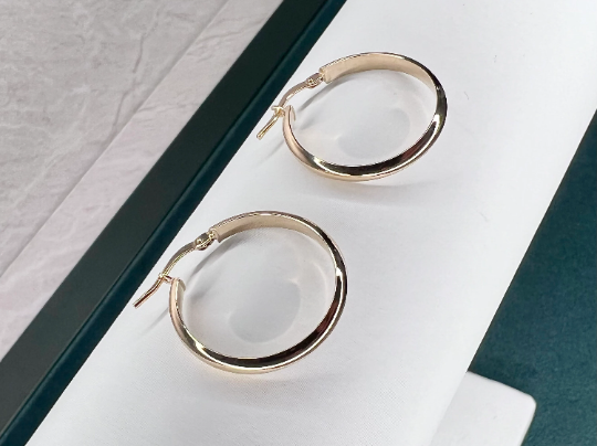 Material and Design: Made from genuine 9ct solid gold, these hoop earrings boast a brilliant shine and a sleek, timeless design. The 24mm diameter strikes the perfect balance between boldness and wearability, making these earrings suitable for various occasions. The hoops are meticulously crafted for a smooth surface and secure fit, allowing them to gracefully frame your face.