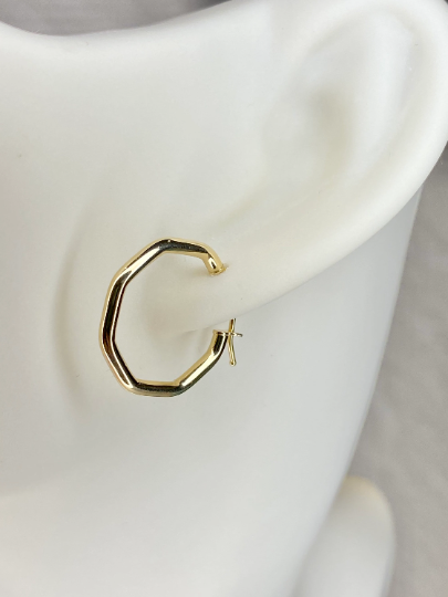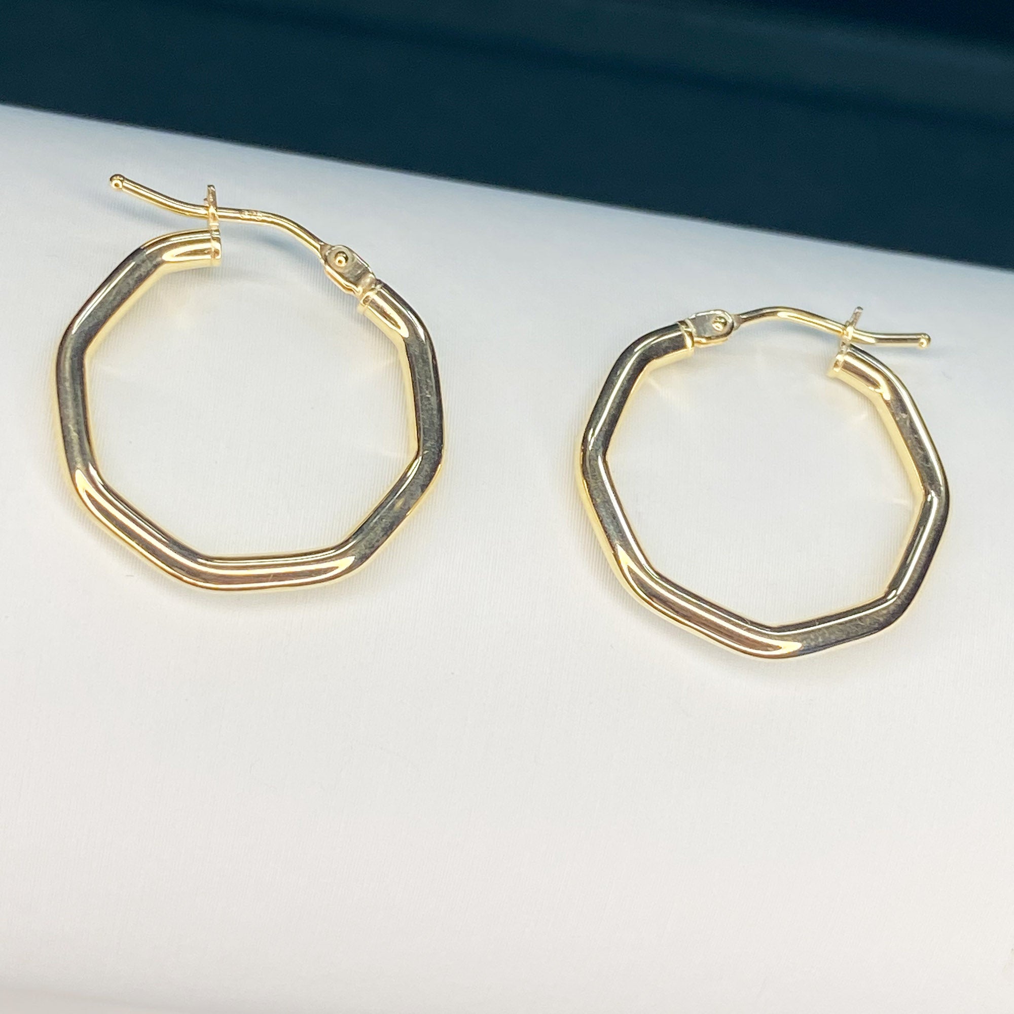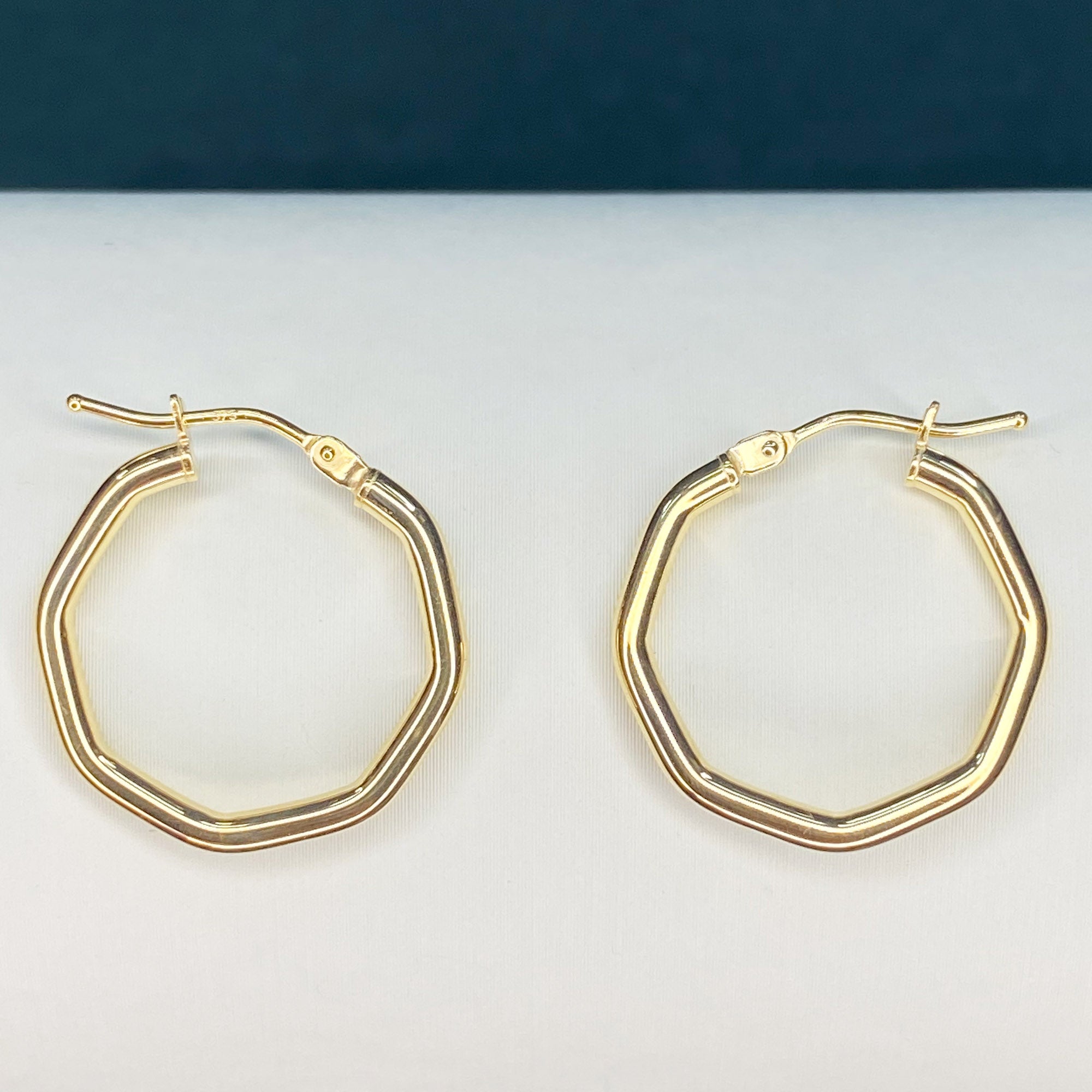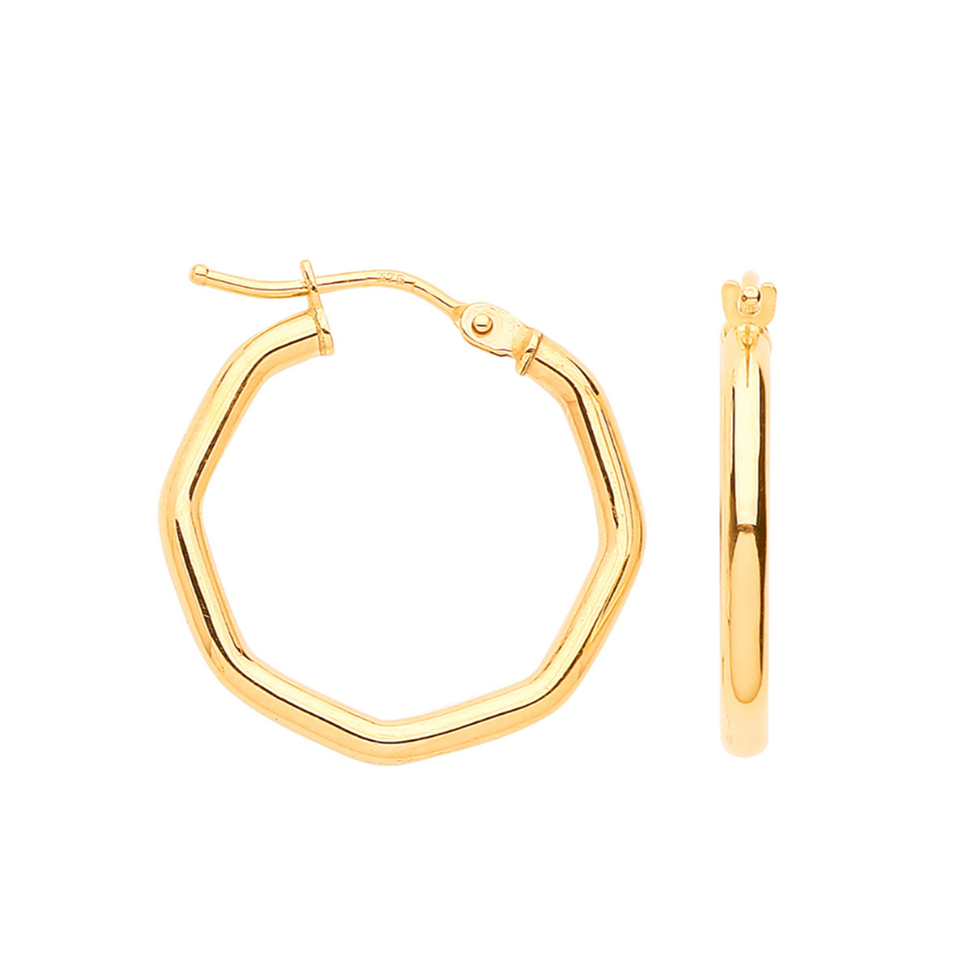 9ct solid Gold Octagon Hoop Tube Earrings 20mm