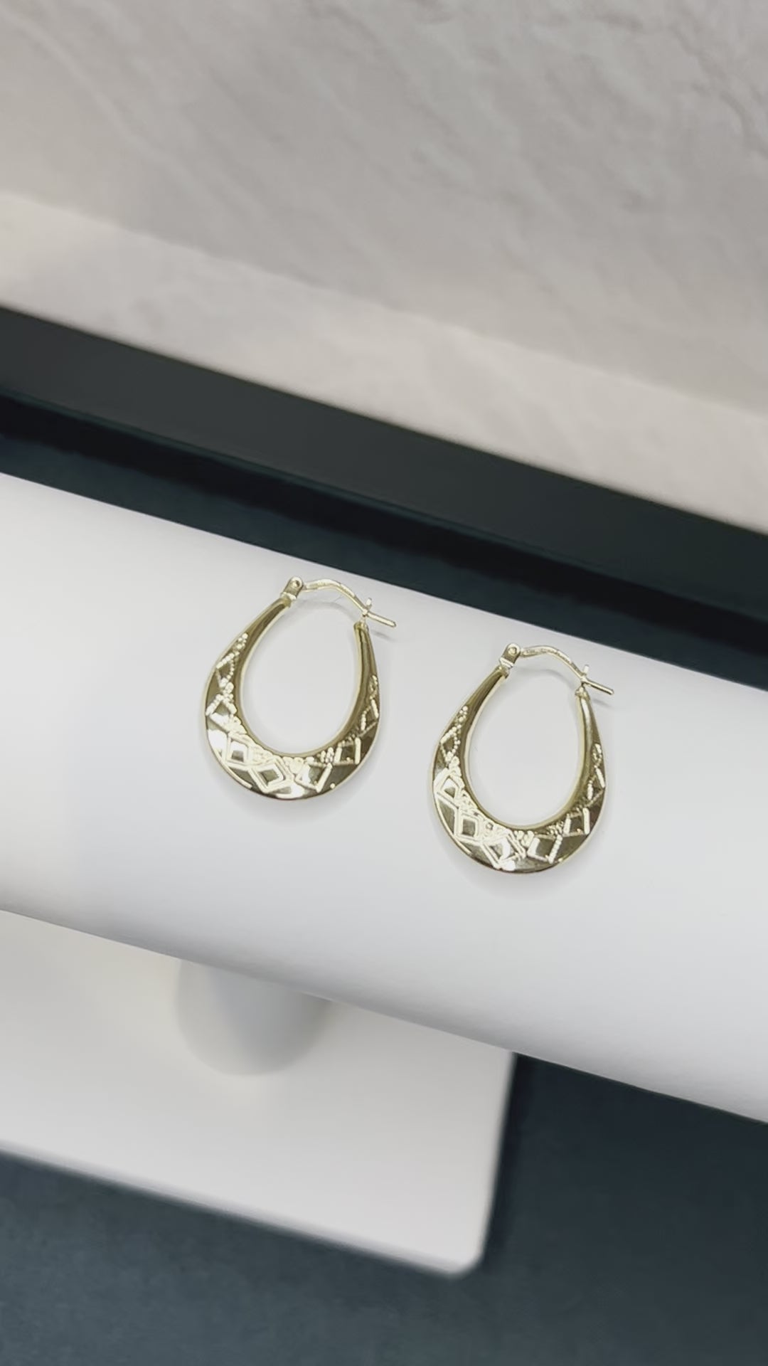 Introducing our 9ct Solid Gold Diamond Cut Oval Creole Earrings, a perfect fusion of classic charm and contemporary elegance. These earrings feature a unique oval creole design with a striking diamond-cut pattern, adding a touch of sparkle and sophistication to your look. Crafted from high-quality 9ct solid gold, these earrings are lightweight, comfortable, and designed to catch the light beautifully.