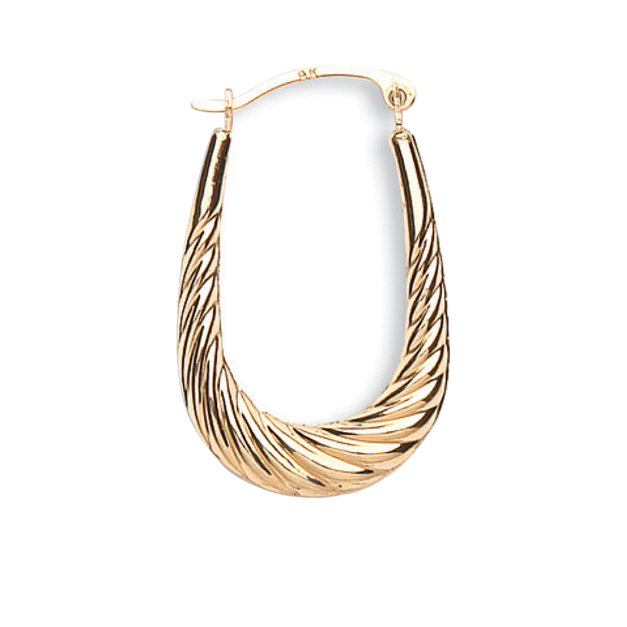 9ct solid Gold Ribbed Oval Creole Earrings 23mm