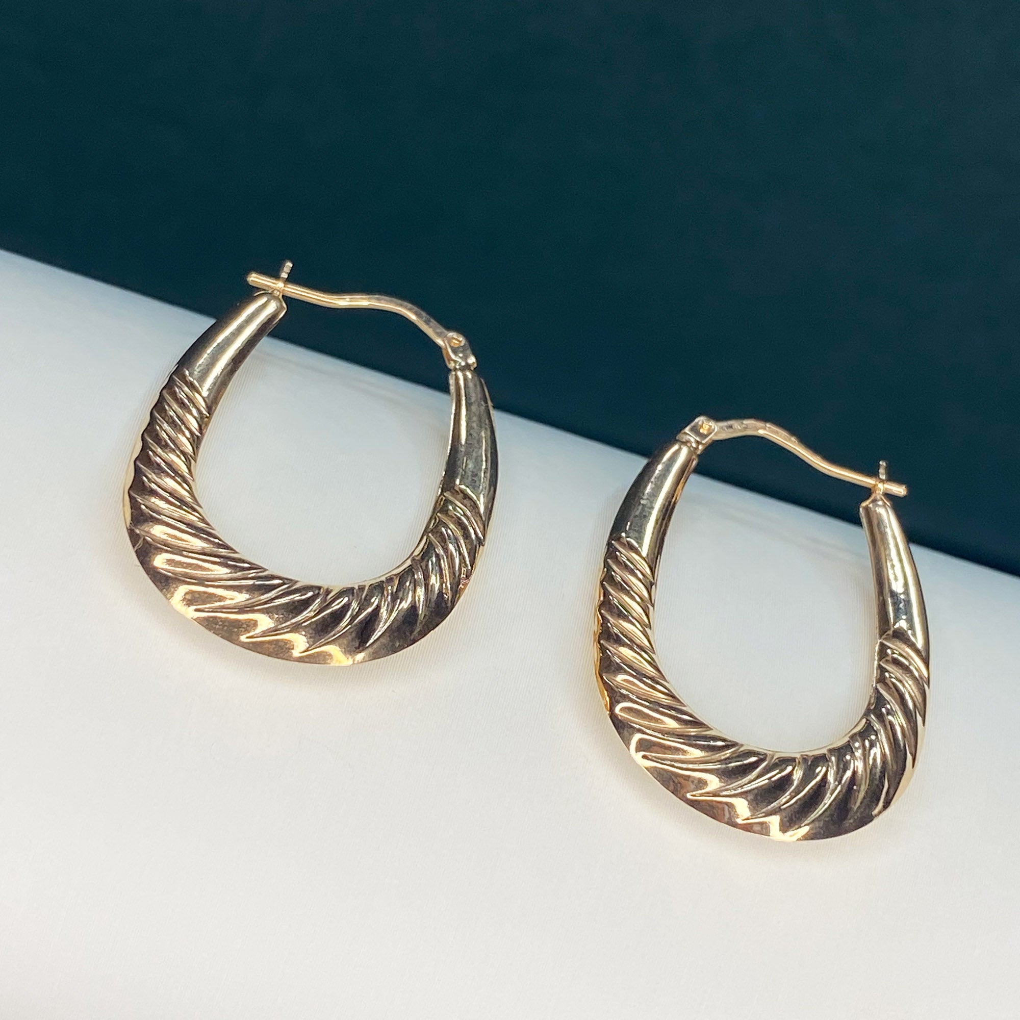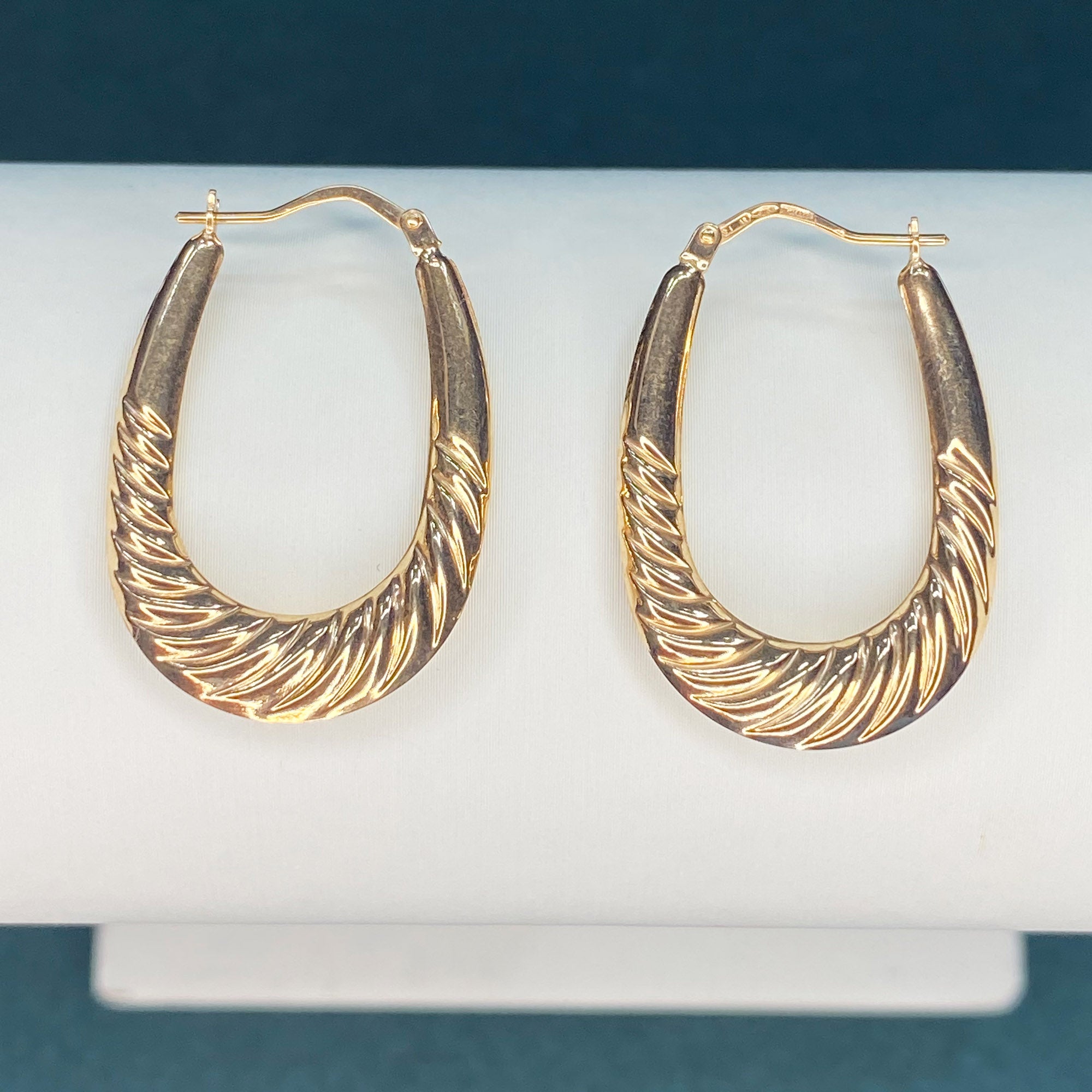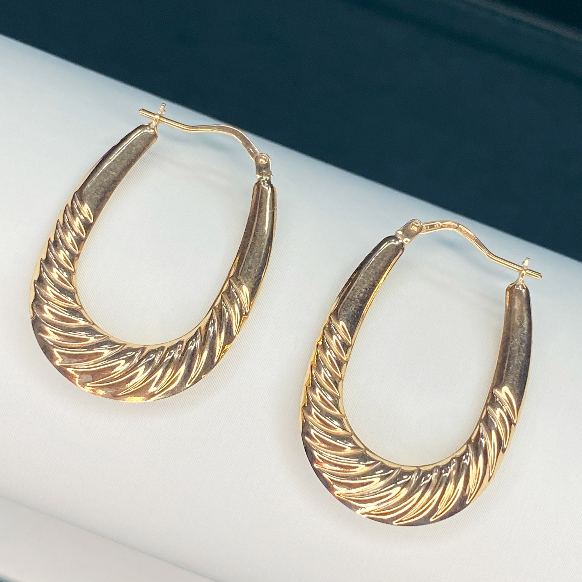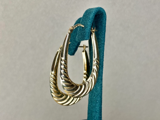 Versatile Elegance: These 9ct Solid Gold Traditional Ribbed Oval Creole Earrings are incredibly versatile, effortlessly enhancing your style whether you're heading to a special event or adding a touch of sophistication to your everyday look. Their classic design and ribbed texture make them a perfect choice for various occasions, allowing you to make a statement wherever you go.