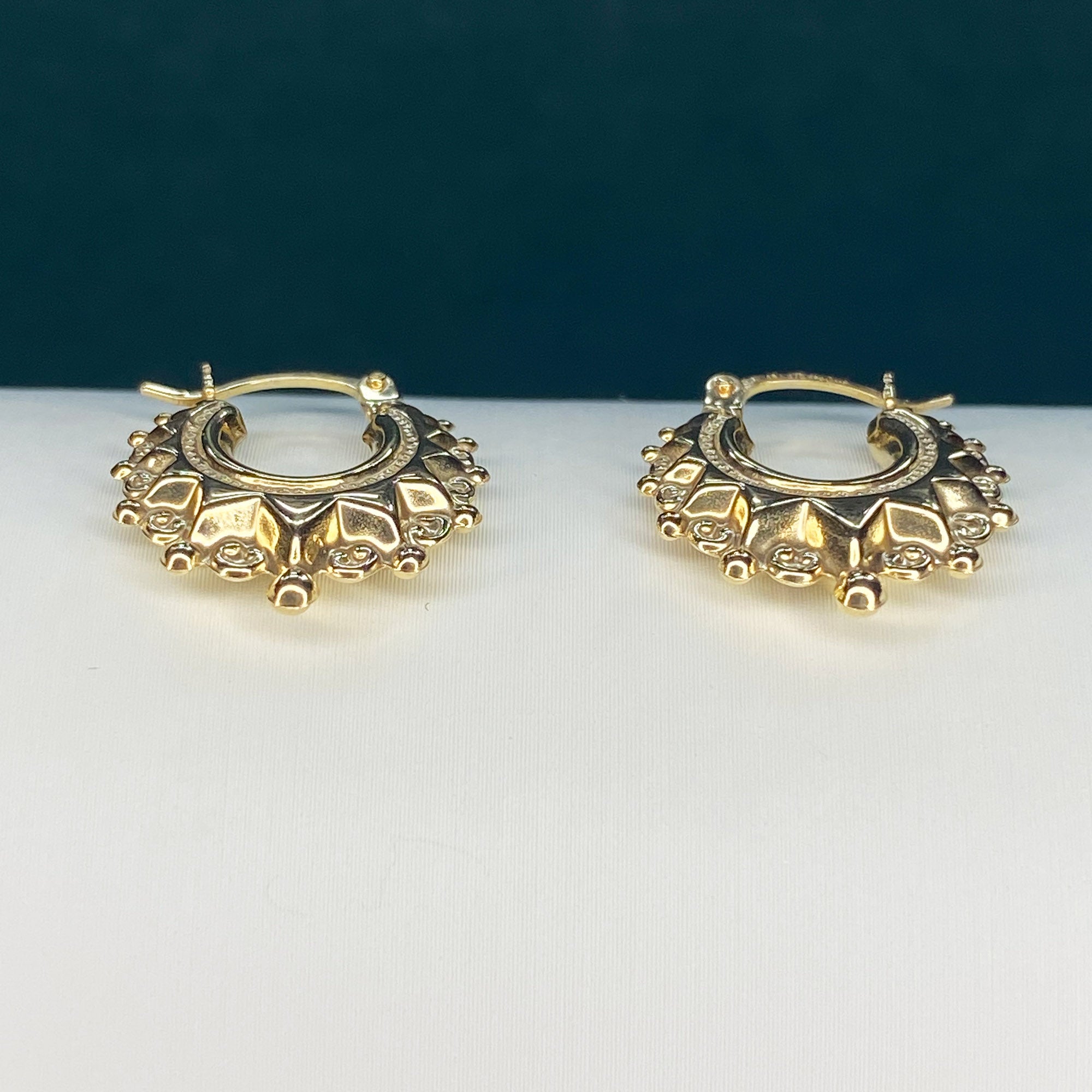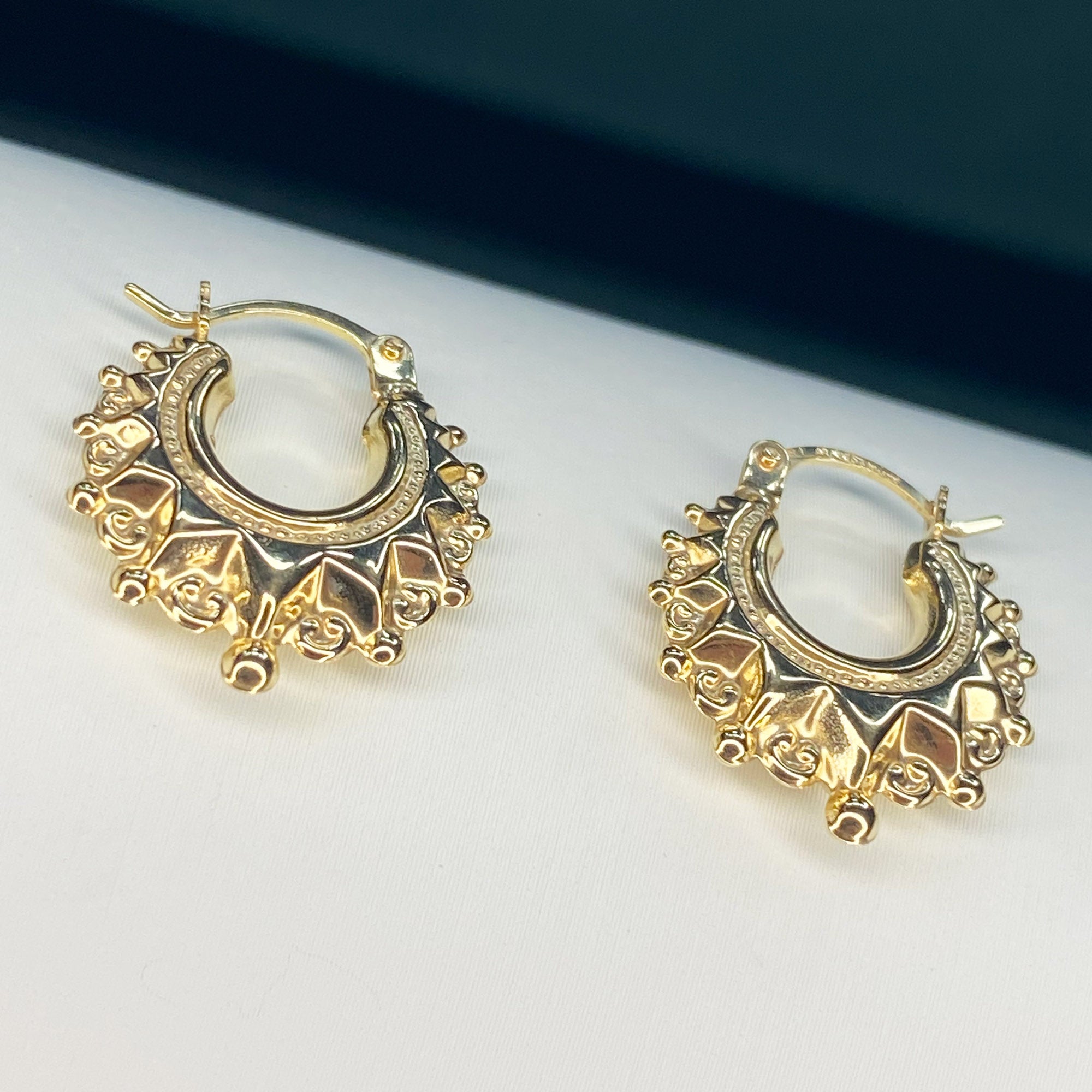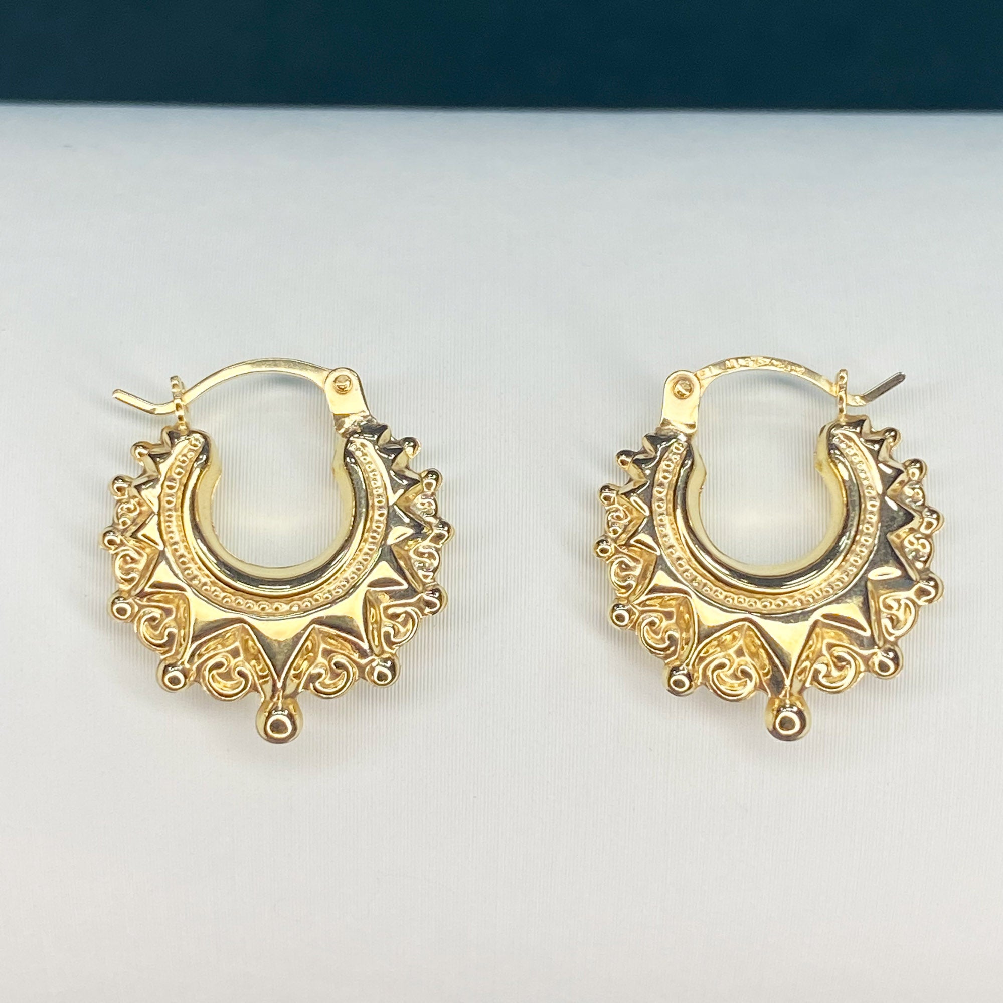 Versatile Elegance: These 9ct Solid Gold Traditional Fancy Creole Earrings are incredibly versatile, effortlessly enhancing your style whether you're heading to a special event or adding a touch of sophistication to your everyday look. Their classic design and intricate detailing make them a perfect choice for various outfits, allowing you to make a statement wherever you go.