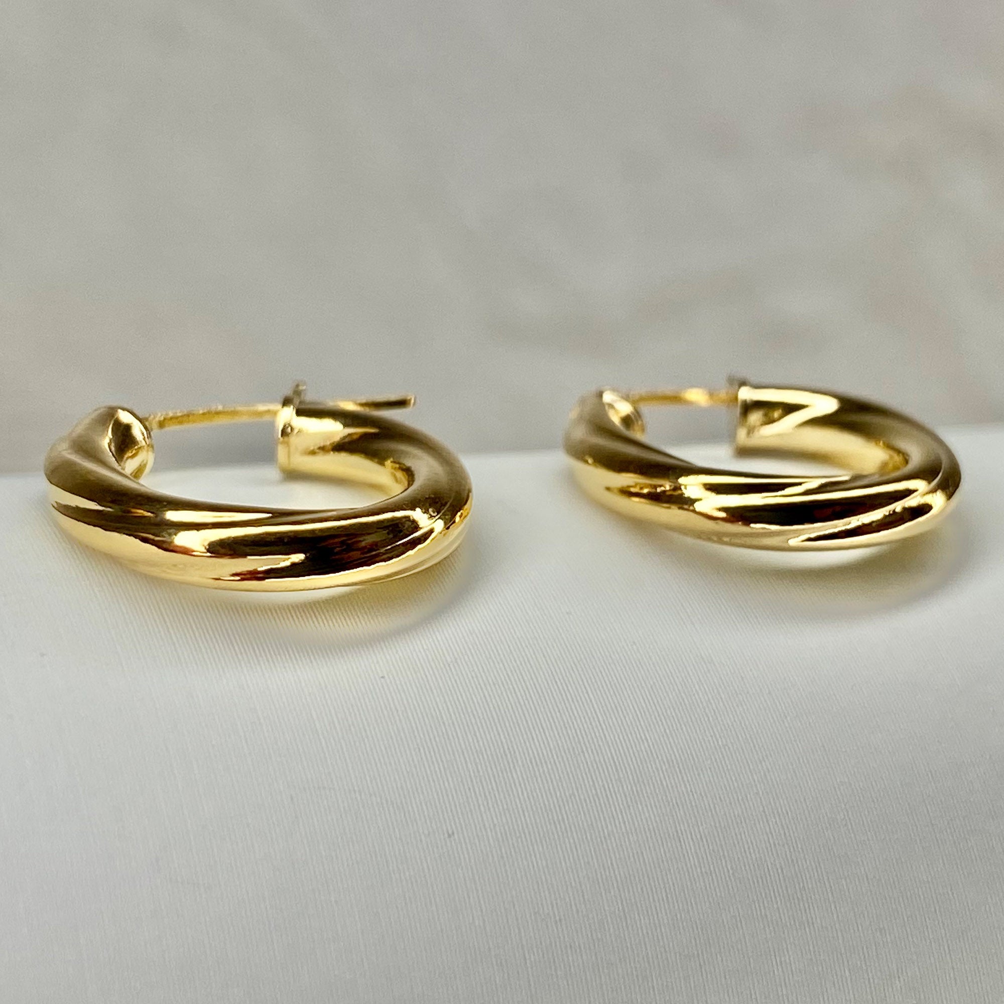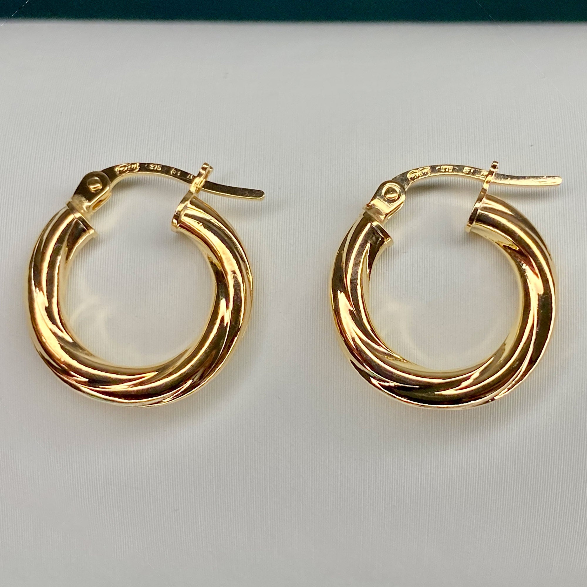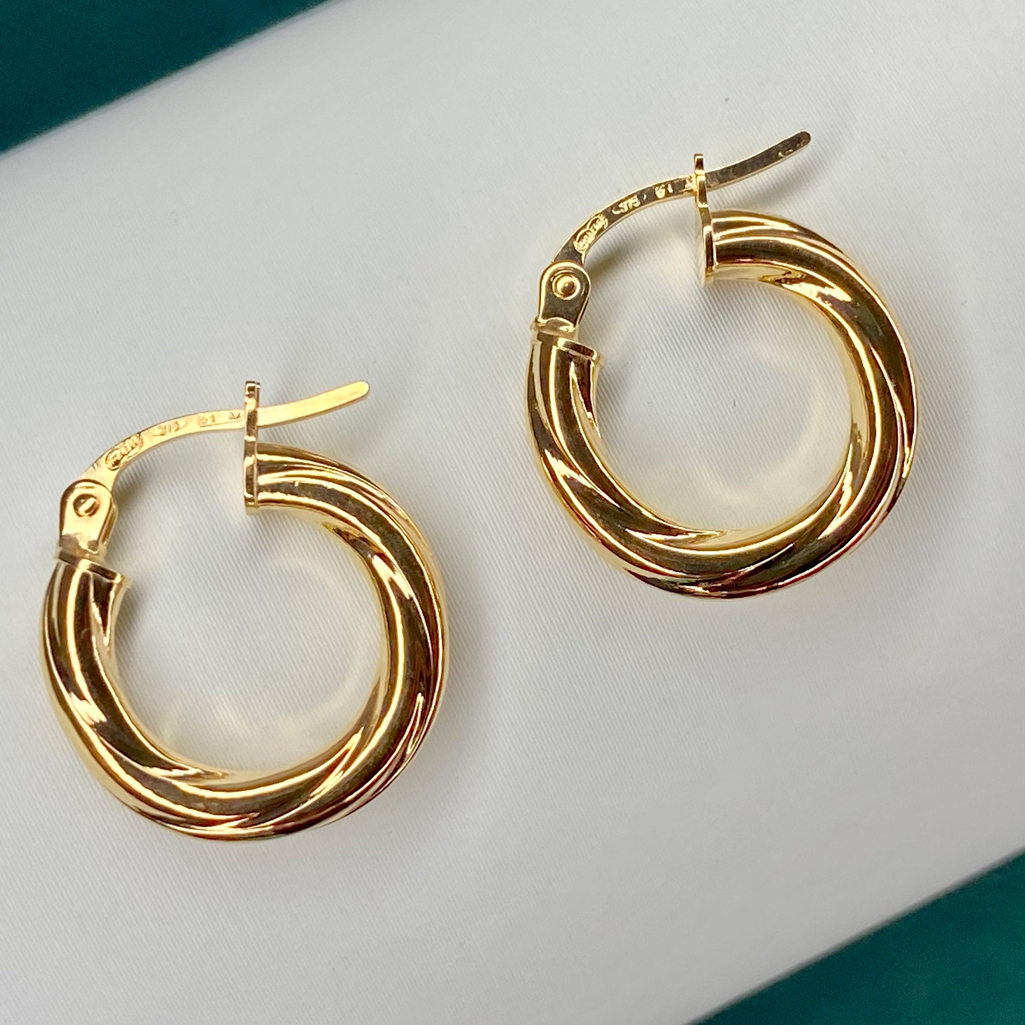 9ct solid Gold Twisted Hoop Earrings 16mm